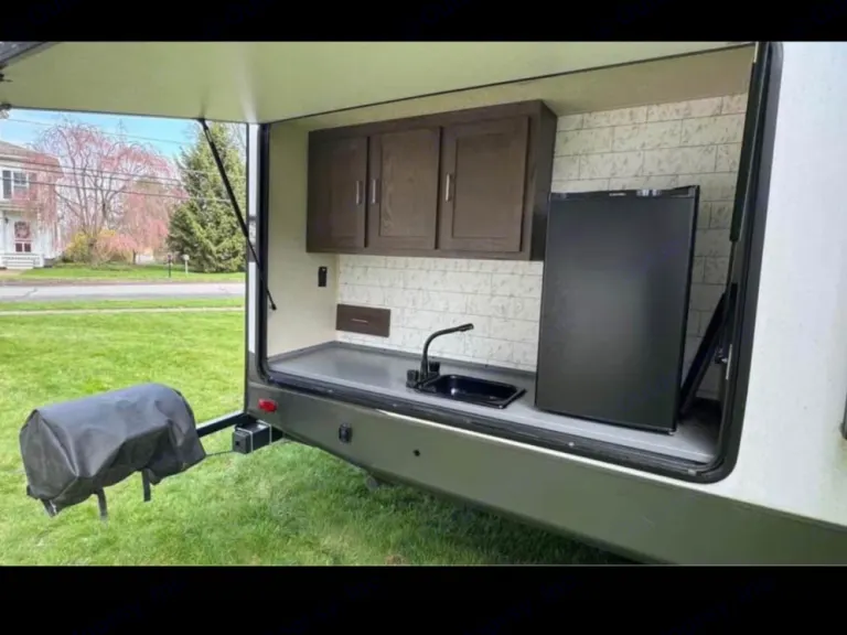 I hope you enjoy making memories like we do! What's includedKitchen stocked with basics, small coffee pot, plates/ utensils/ pots & pans Outdoor kitchen/ grill with mini fridge 2 pull out couches 2 bunk beds 1 queen bed Roku TV in the main living area Upgraded toilet and shower head in the bathroom We prefer to deliver to site and set up for you- Free delivery within 25 miles. We can discuss further optionsOther things to notePlease no smoking