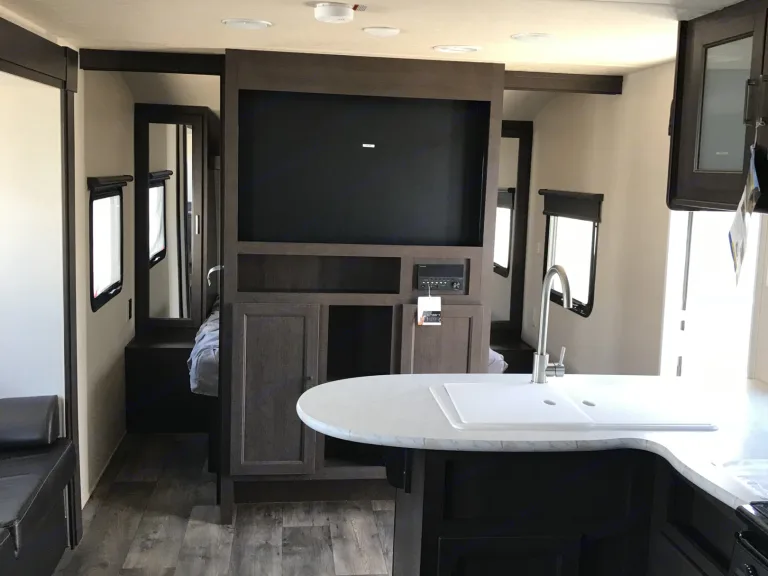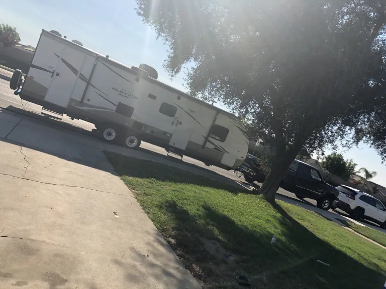 This is a brand new unit, Speakers inside and out. Looks like a little home inside, very clean! Sleeps 8 comfortably. Has one large slide out. LED lights through out whole trailer, everything is a electric and can be used with a remote such as the jacks, slide out. Awning and lights for easy setup! Comes with tables, chairs, shampoo, soap etc. also has outside shower. Can be towed with a half ton truck no problem. Will deliver/pickup for a fee depending on where you need it. If dry camping where there are no hookups there will be a $40 waste disposal fee for black/grey