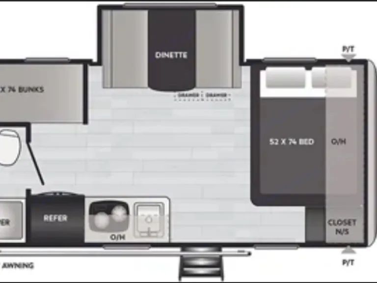 This nearly-new RV is the perfect home on wheels for your next getaway. Equipped with solar power and a fresh water storage tank, it's ideal for off-the-grid camping. Sleep in comfort on foam mattress toppers in every bed, ensuring a restful night after a day of exploring.The spacious dining slide-out adds extra room to relax, while the kitchen comes fully stocked with essentials—including a French press and coffee mugs for your morning brew. We’ve also included dish soap, shampoo, conditioner, and body wash for your convenience.To make your trip even more enjoyable, we provide games, camp chairs, roasting sticks, and an outdoor mat for the perfect campsite setup. Just pack your bags and hit the road!