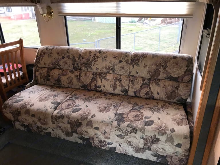 I have a great motor home. It is older than some but you wouldn't know it. It has low miles and is in terrific shape. It is fully outfitted with all pots, pans, dishes and silverware. It has LCD flat screen TV with a Blu Ray DVD player attached to it. There is also many camping tools in the basement of this coach. An axe, a maul, chairs, a BBQ and outside stove. There is a large wood-box on the back of it. It is fully self-contained with a 4000 watt generator. It has mostly LED bulbs in the living space of the coach to conserve battery power when dry camping. There is one very large slide that makes a world of difference. It makes the kitchen and living room so much larger and way more comfortable. It is very easy to drive. You will have a great time camping in this RV! There is a $95 non-refundable cleaning fee. Gas tank & propane will be full at pickup. Please make sure they return full as well. Thank you for your interest!