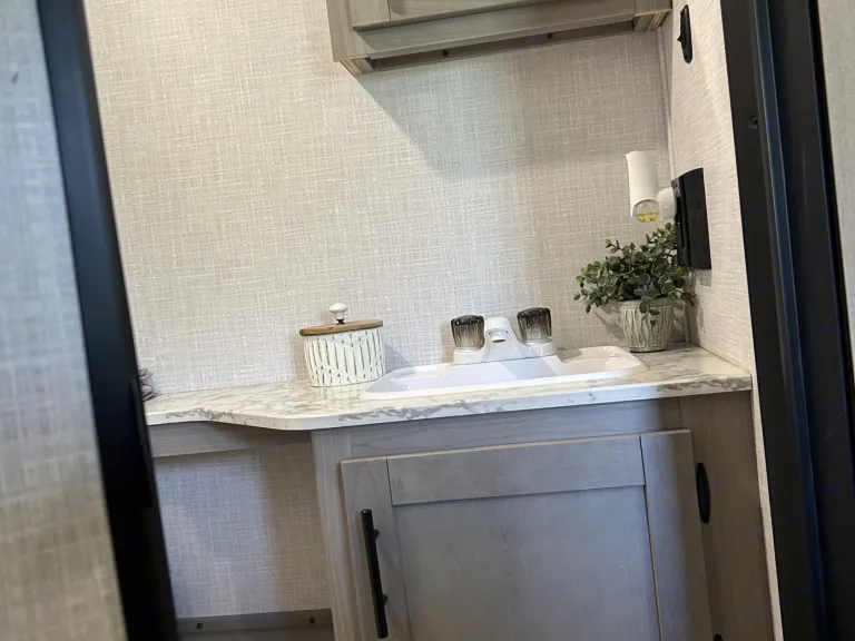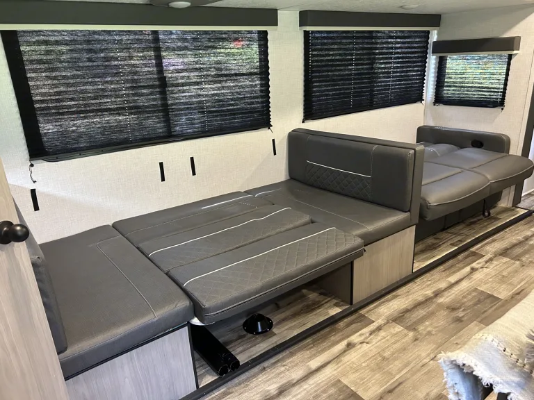*Please note, that the manufacturer recommends that the RV will sleep 10 people (2 per bed). This can be done with children but with the size of the bunks, we recommend this unit can sleep 6 adults comfortably.