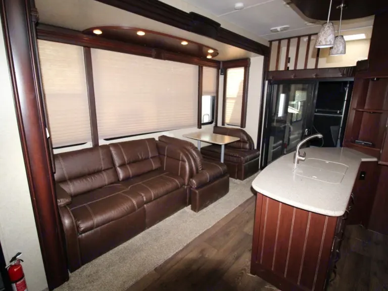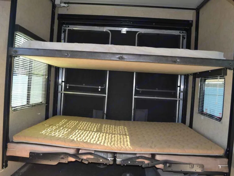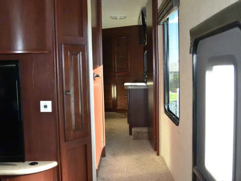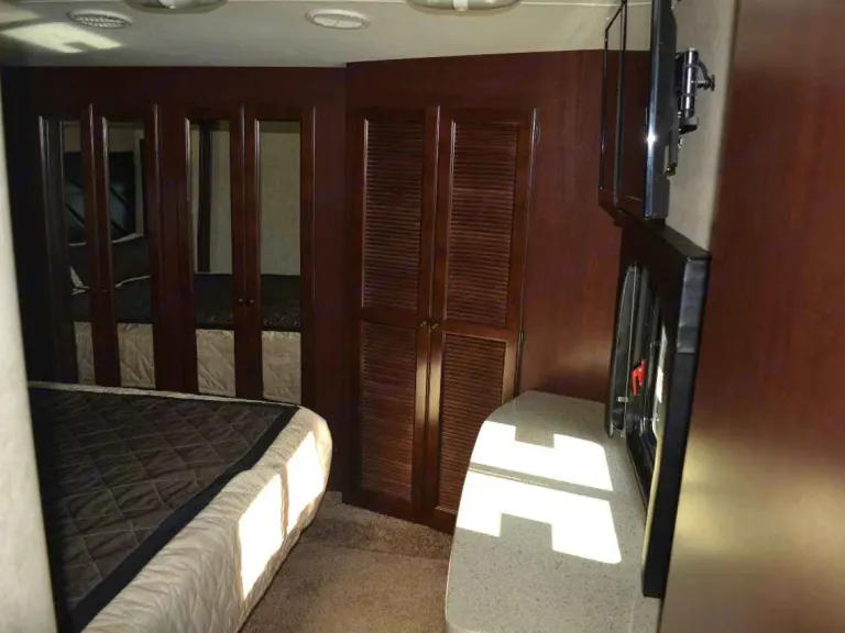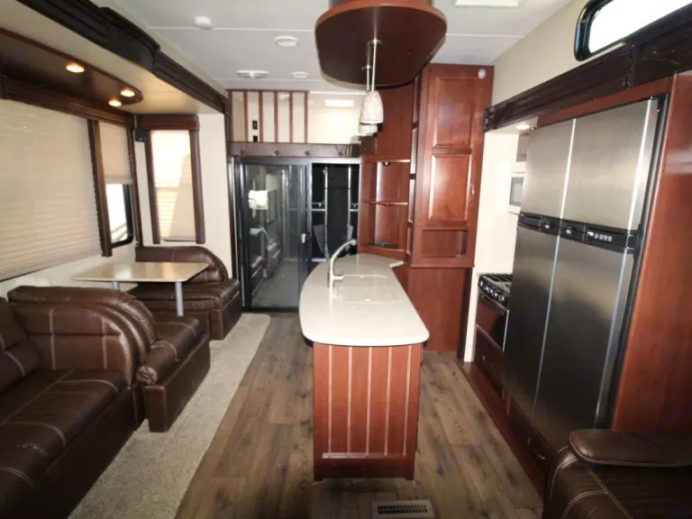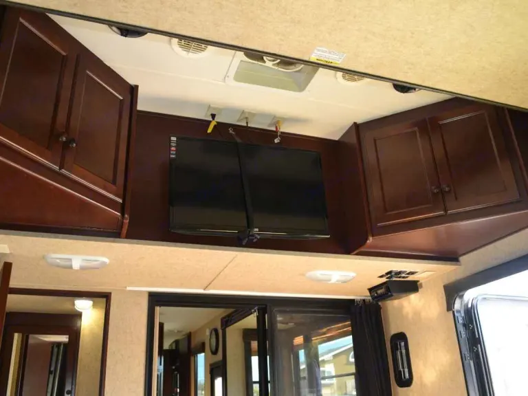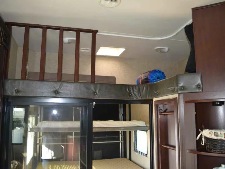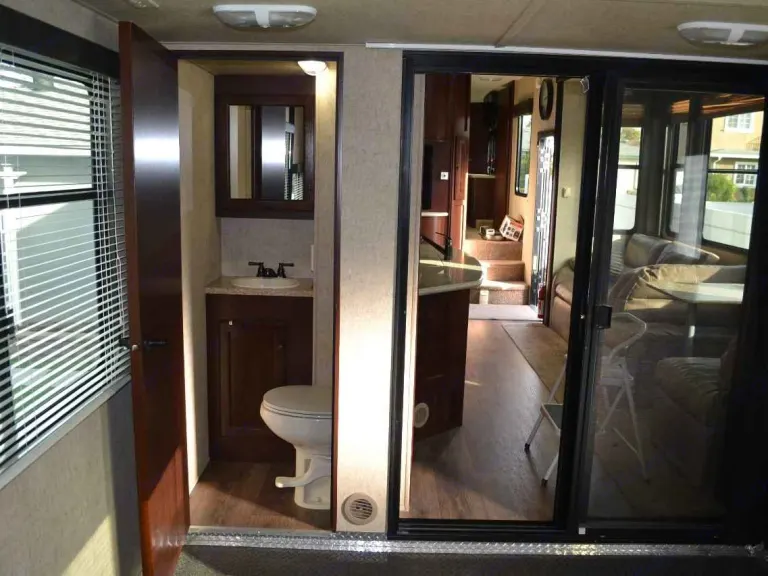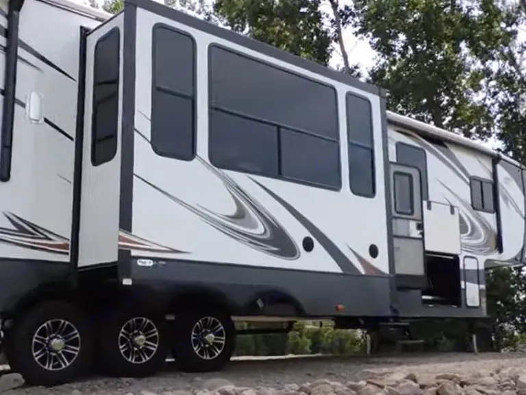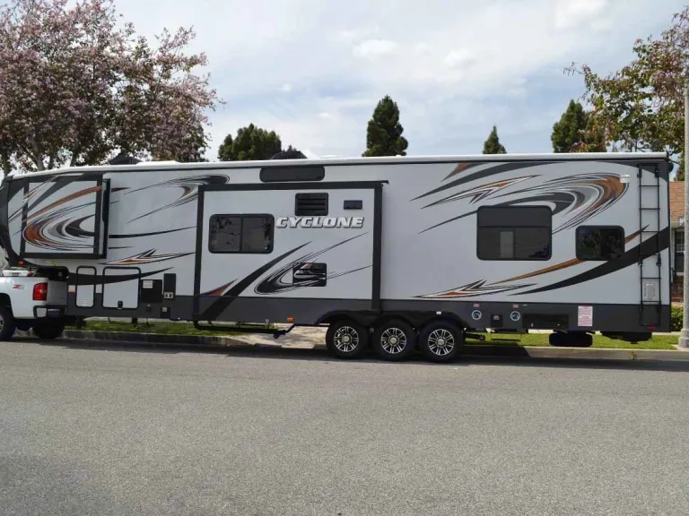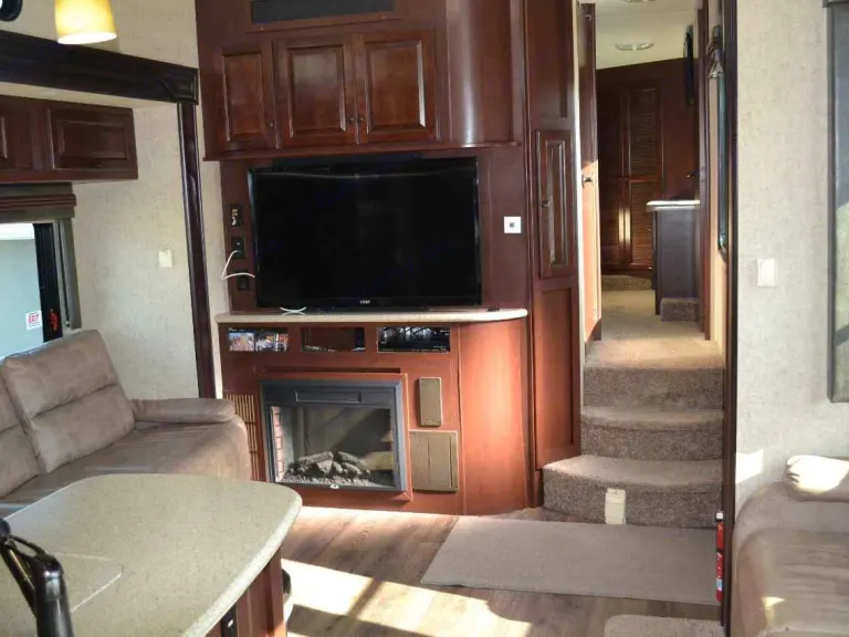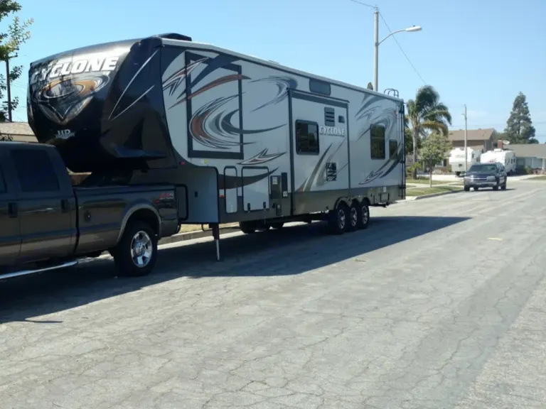 This triple slide Heartland Cyclone fifth wheel model 3800 toy hauler features a 12' garage, one and a half baths, and a loft that the kids will really enjoy!The rear 8' ramp door makes loading and unloading a snap. Inside the garage space there is a storage box built in the floor for tools or things you might need. There are also two corner overhead storage cabinets for outdoor gear. Plus, you will love the convenience of a half bath featuring a toilet and sink.Enter the main living space where you will see a ladder on your left as you step inside to reach the loft above.A large slide out sofa/dinette featuring a table is to the left of the main entry door, or to your right as you come in from the cargo area.You will also see a slide opposite that features theater seating for two, and an overhead cabinet as well. This slide also features a three burner range, refrigerator, and pantry.Enjoy the entertainment center that is found along the interior wall. Enjoy a flat-screen TV, Fireplace, and upper and lower storage cabinets, and more.Step up to a side aisle bath and front bedroom. The bath features a shower, toilet, and vanity with sink.The private front bedroom offers a quiet relaxing retreat with a slide-out queen bed, dresser, slide-out TV, and front wall wardrobe, and a corner closet.What's includedBed linens, 3 tv's, 2 bathrooms, separate master bedroom. Coffee pot, pans, eating utensils, and toilet paper are all included with the rental. We have most items you would need for any trip and are willing to help with anything you might need.RecommendationsWe have taken this trailer to music festivals, desert motorcycle trips, and across the united states from California to South Carolina camping everywhere along the way. Other things to note.