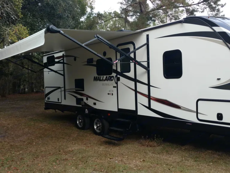 New, sleeps 8 outdoor kitchen and entertainment. Up dated aftermarket amenities. Heather lite and all composite materials with extra wide axle makes towing a breeze. Set up also made simple with all electric outriggers.