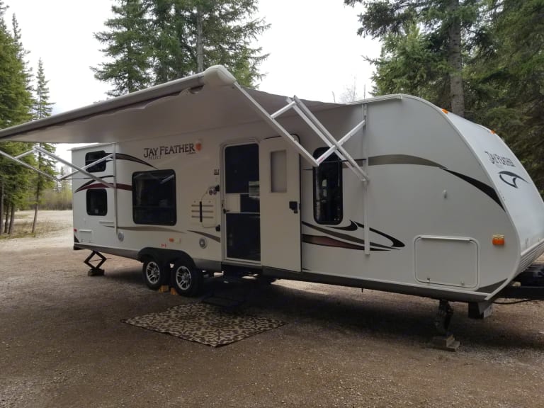 this 2011 Jayco Jay Flight 28 BHS is a nice easy camper to use. lots of room and lots of fun. can sleep 5 Adults comfortably or max 9 with mixture of small kids.Bedding, plates and utensils are included enough for 4 people. Electric and gas coffee parts are also included.If you require other camping items, like camping chairs message me and I will confirm what I can do for you.