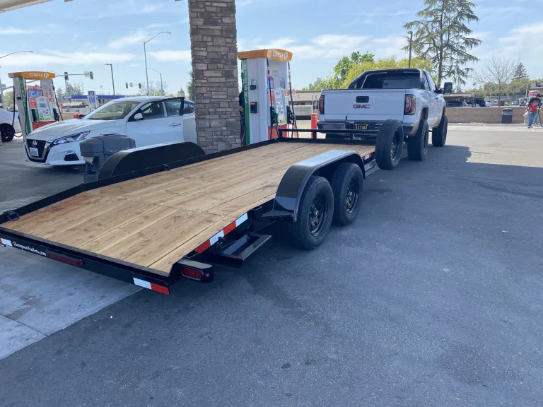 2021 Car hauler. Trailer includes 4ft ramps as well as dovetail which is perfect for lowered vehicles. Spare tire for peace of mind. This trailer has a 5300lb load rating. Perfect for car or side by side utv. Requires 2 5/16 trailer ball What's includedTrailer brakes, 4ft loading ramps, and spare tire. Delivery and pick up within 10mi available upon request. RecommendationsPerfect for weekend trips with outdoor toys or recovery