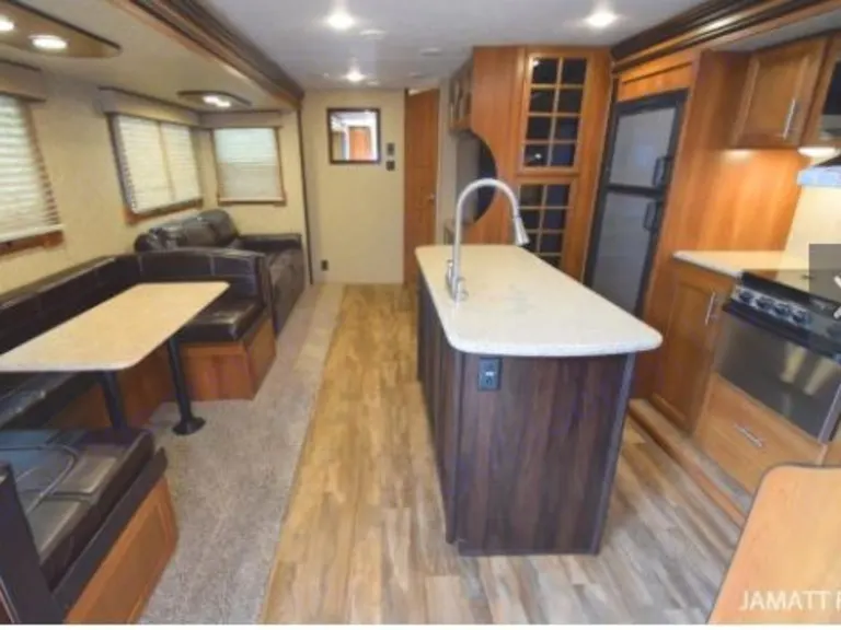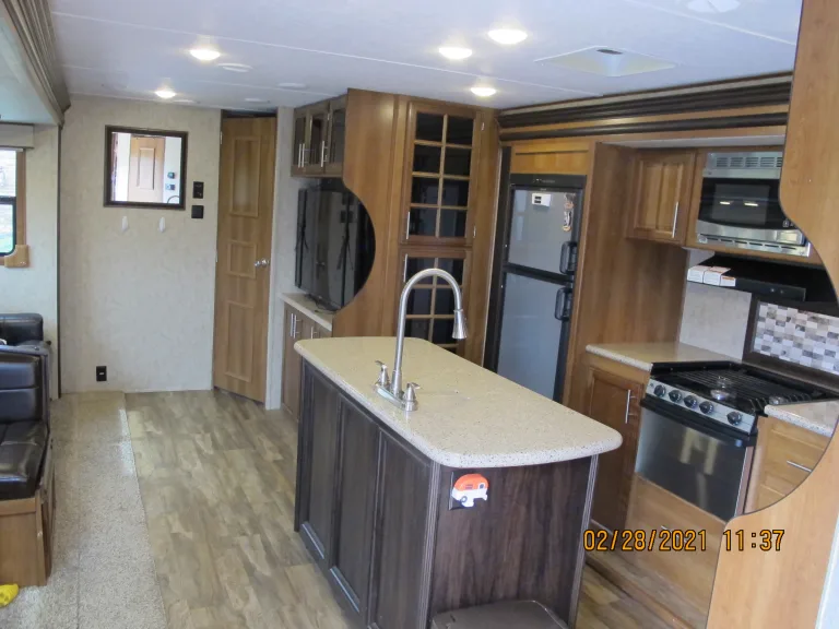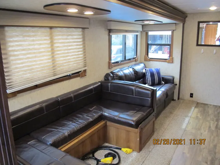 This 37-foot camper is the perfect family trailer! It has 3 slides and Dual Air Conditioners. It is fully stocked with cookware, flatware, plates, bowls, glasses, coffee mugs, coffee maker, and toaster. Large pantry.