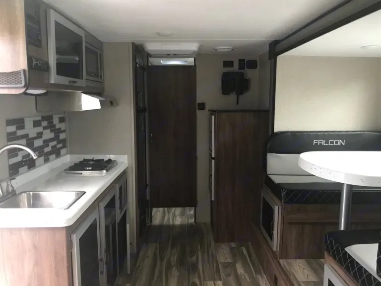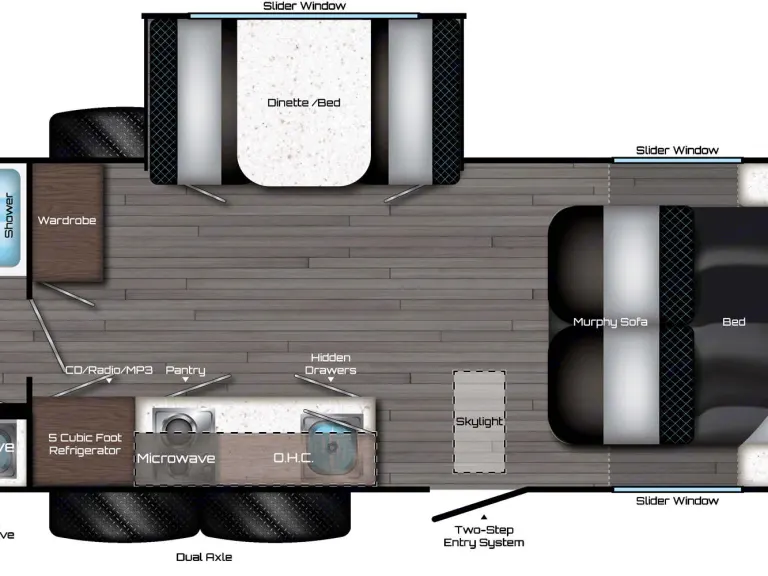 It comes stocked with everything you need for your trip except for linens and towels. Just bring clothes, linens, food and drinks. Top of the line in it's class with Michelin tires, electric tongue jack, electric awning, kicker audio system. Super easy to tow and set up.