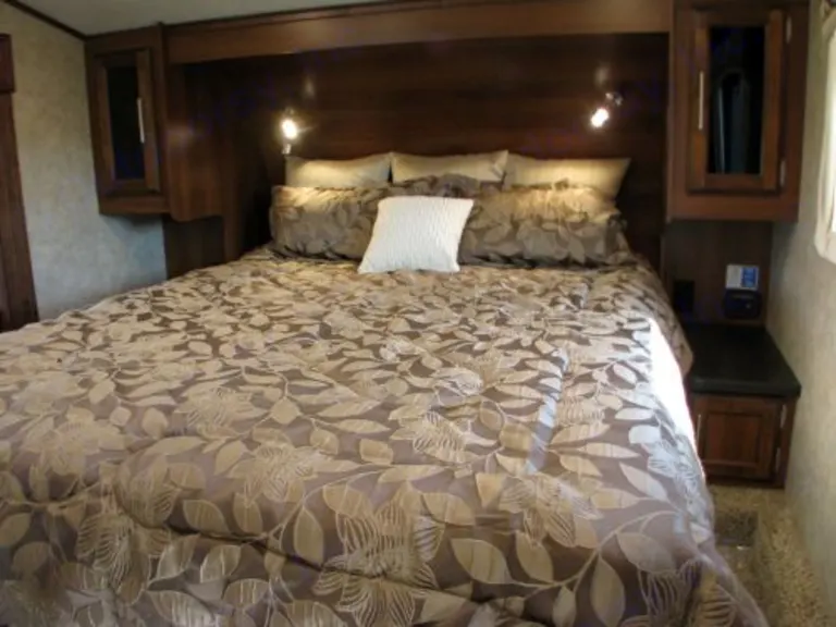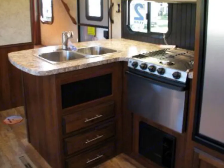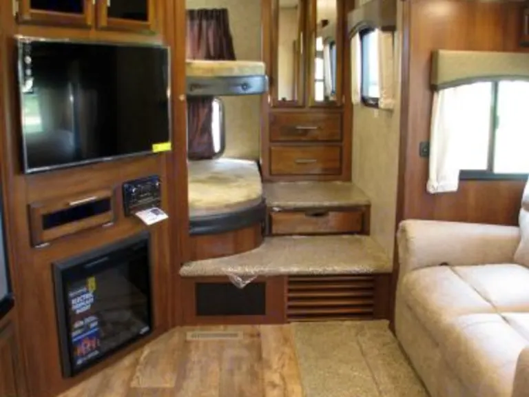 Beautiful brand new 5th wheel!! It has a master suite and a second room with 2 bunk beds. Stainless steel appliances and perfect for any vacation. Comfortable with a 32" flat screen tv! Full kitchen with a small oven, 3 burner stove top and a microwave. The laminate wood flooring makes for an easy cleanup and a loveseat couch for lounging. There's a dining table that seats 2-4. The rv has an outdoor kitchen with an outdoor fridge.