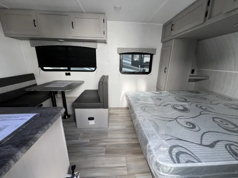 Perfect for a cozy getaway, this easy-to-tow trailer sleeps three comfortably.