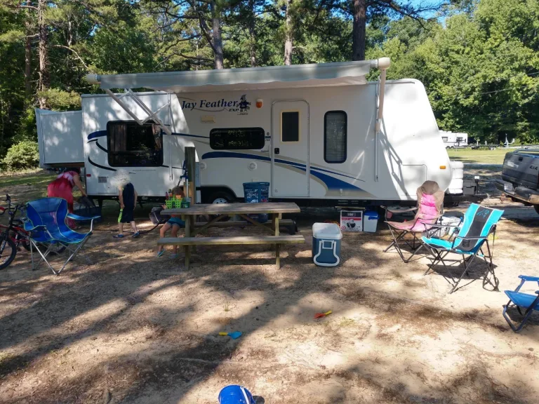 2009 Jayco jay feather 26 feet long with two queen beds, one slide slide out sleeps 8 stove refrigerator ac and electric awning we will set up and pick up on site of your choice in the area Kerr lake this is a family friendly camper and is lots of fun at the lake