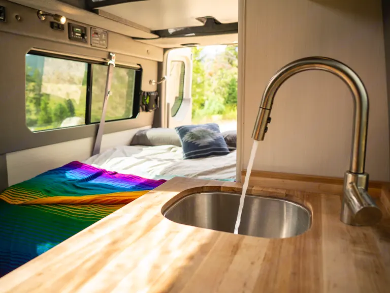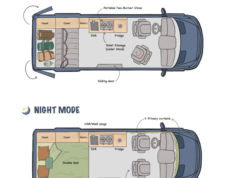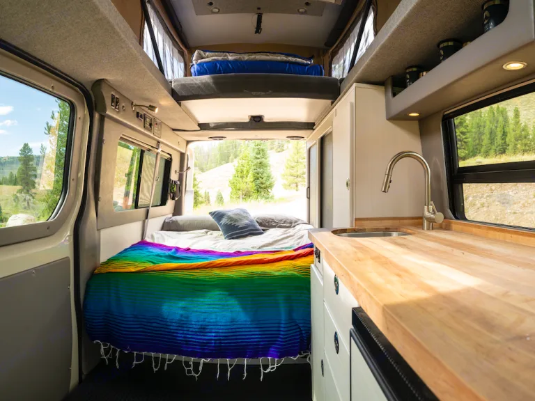 We aim to provide everything you’ll need to enjoy the adventure you have planned with no hidden fees! All linens, cookware, and camping equipment are included in the rental. A full list of everything you will find in your van when you arrive is listed on our website. We have additional equipment like Starlink satellite wifi, bike racks, coolers, hammocks and others available for an additional charge to make sure you’re fully stocked.Luxury Amenities