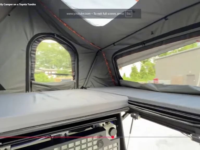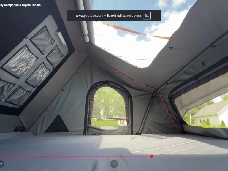 Easy step-on running boardsThorough walk-around + easy how-to guide included for all gear and equipmentSpacious, weatherproof, and comfortable — perfect for families, couples, or friendsPower System — Portable Solar GeneratorStay powered anywhere:1200Wh lithium battery in a portable power station1500W inverter to run coffee makers, blenders, rice cookers, and moreMultiple USB ports + AC outletsRecharge via 100W solar panel or the truck alternatorSimple plug-and-play operation for all your devicesAwnings & Outdoor ComfortOverland Vehicle Systems 270º driver-side awning — massive shade coverage from the driver door to the tailgateAmber LED under-awning lighting for low-bug, camp-friendly illuminationShower awning included — perfect for rinsing off, changing clothes, or using with a flushable portable toilet (available as an add-on)What's includedCali King Size Sleeping Platform