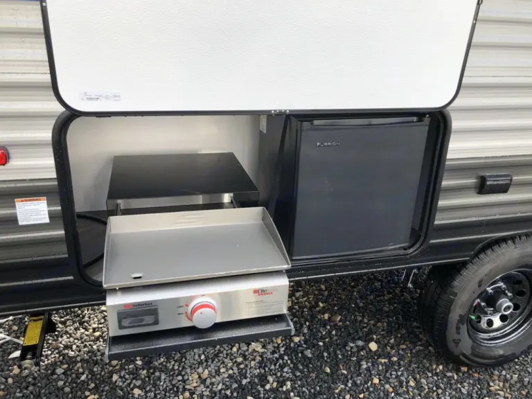 This rig is brand new and sleeps 8! It has great roof A/C, heater, outdoor electric led lights, shower, toilet, microwave, stove, fresh water tank, and more. The queen murphy bed folds up into a couch for more hangout space during the day. This trailer is easy to tow and very lightweight - about 4,000 pounds dry. Gross weight about 4,850. Hitch weight is 480 lbs.Travel trailer with a lot of room for the size.