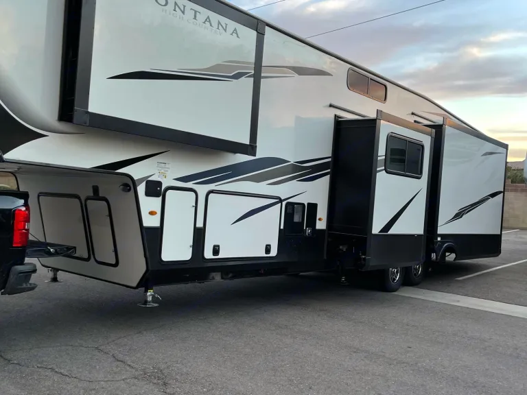 Our brand new 2021 5 slide keystone Montana is guaranteed luxury on wheels. It includes a living room fire place , leather sofa recliners with flat screen tv, microwave, stove, oven, residential fridge, freezer, with purified water and ice maker . Bathroom, shower, toilet, a king size bed, a bunk bed, and a central vac.