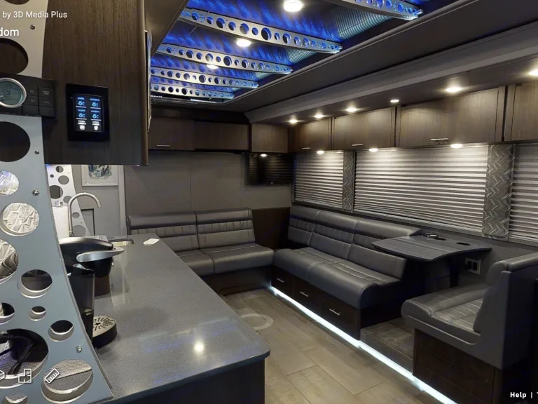 Step aboard the ultimate VIP road experience with our 2022 Prevost X3-45 Star Car, a professionally converted motorcoach designed for comfort, style, and performance. Whether you're heading to a music festival, Nascar race, tour stop, or luxury group getaway, this coach delivers five-star accommodations on wheels.Inside, you'll find three private bunk beds, each with blackout curtains, individual lighting, and climate controls — ideal for crew, guests, or kids. Two spacious lounge areas (front and rear) offer plush seating that converts into additional sleeping space, perfect for relaxing, entertaining, or catching up on sleep between stops.The kitchenette includes a refrigerator, microwave, sink, and storage — everything you need for meals or snacks on the road. A private bathroom with a flushing toilet and vanity adds comfort and convenience not often found in vehicles of this class.The ride is ultra-smooth thanks to Prevost’s world-class chassis and air ride suspension, and the onboard climate control system keeps everyone cool and comfortable, no matter the weather. You’ll enjoy multiple Smart TVs, Bluetooth audio, and Hdmi inputs to keep your group entertained.With massive storage bays underneath for gear or luggage and optional driver service, this Star Car is the perfect solution for touring artists, corporate events, production crews, or luxury-minded travelers.