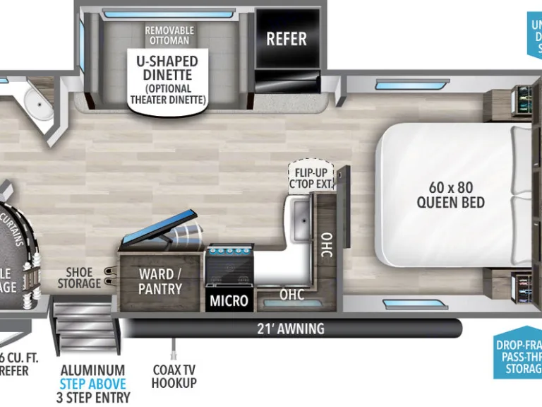 + For your comfort, (however not necessary) make sure full hookups (water, sewer & 30 amp electric) are available at your campground of choice