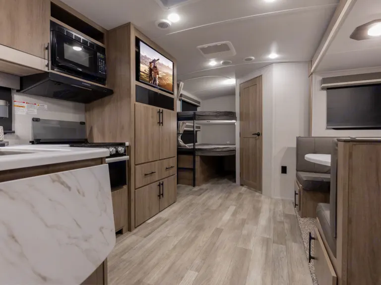 Make your vacation worry free and comfortable with this beautiful Grand Design Bunkhouse travel trailer. This beautifully designed bunkhouse is spacious & airy with plenty of room for the family.Two double bunks are located in the back and the master bedroom is located in the front with a full-size queen mattress.The following amenities are included at no extra charge!