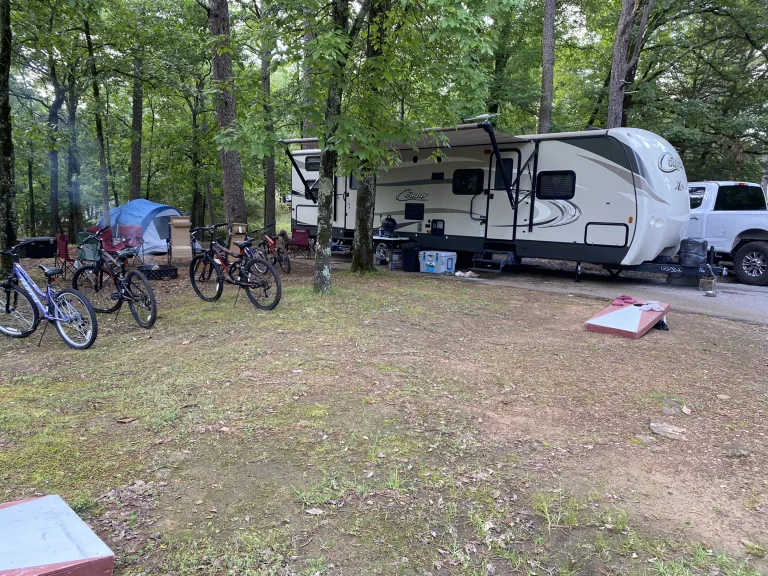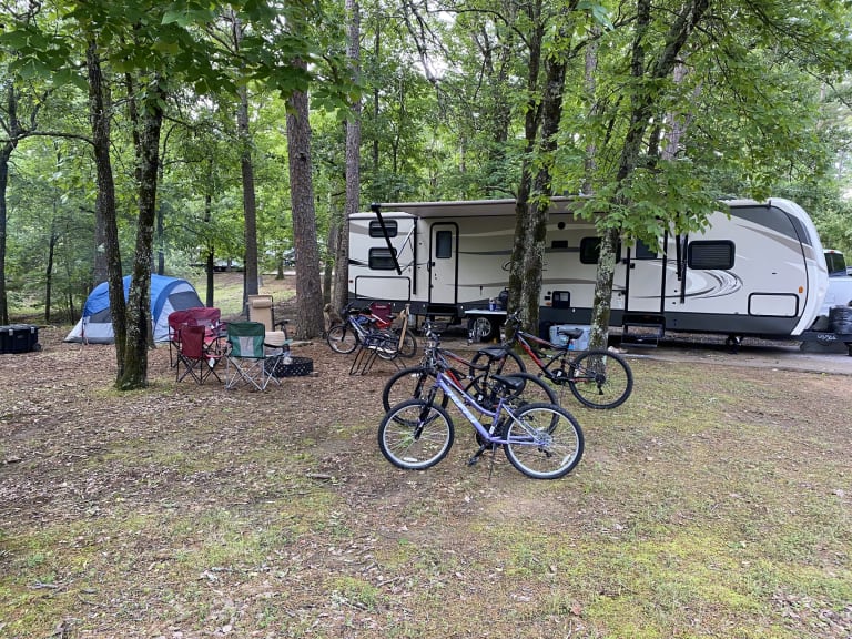 -plates, bowls, cups, coffee cups and silver wear RecommendationsGreat for various campsites…we have used at campsites with full hookups and no hookups at all and always have a great experience. We love being near the water! A couple of our favorite spots are Heber Springs and Land between the lakes. Other things to noteNo Smoking!
