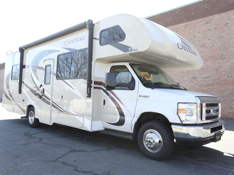 Ample SeatingWhen you want to just get up and go, choose this Thor Motor Coach Chateau class C motorhome for any journey near or far. This unit features everything you might need for an extended road trip, and there is plenty of space for several travelers. A complete kitchen offers you the convenience of dining and eating exactly what you enjoy, no matter where you are parked! The full on-board split bath allows you to keep clean and fresh every day. This area can be easily closed off from the main living space, as well as from the private bedroom that is a step up in back. With a comfortable queen bed, a cab over bunk, and sofa, you can easily sleep five in this coach. So, the next time you get the urge to wander the countryside for awhile, check out this Thor Motor Coach Chateau gasoline motorhome. It is sure to provide all the comforts and conveniences you are looking for!Let your journey begin with a Chateau class C motor home by Thor Motor Coach. Along the exterior you will find a welded tubular aluminum roof and sidewall cage construction, a one-piece fiberglass front cap, plenty of exterior storage, and a power awning with LED lights. Inside there is an impressive 84" ceiling height, residential vinyl flooring, and high-sheen cabinets with nickel finish hardware. You will also find that each model has an Onan RV QG 4000 gas generator, an automatic shoreline-to-generator transfer switch, and is pre-wired for solar charging. What are you waiting for? Come select your Chateau motor home and see where your next adventure takes you!