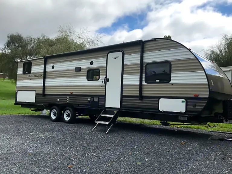 Master: Private queen bed with storage closets.Bunkroom: Spacious private room with couch with, three bunks, and entertainment center.Misc Sleeping: The dining table and couch also convert to beds for additional sleeping.Indoor Kitchen: Comes with pots and pans, coffee pot, toaster, dishes, utensils, knifes, plates, bowls, cups, cutting board and broom.. Also comes with microwave and stove top/oven. Kitchen Island for extra working space and lots of storage.Entertainment: RadioBathroom: Toilet, sink, shower, toilet paper, septic tabsYOU Provide: linens (sheets, blankets, pillows) and towelsDelivery: Delivery, setup and pickup available for a feeRefundable Damage Deposit: $500Delivery: All Turnpike tolls Not included original delivery quote and will be charged to renterWHY Rent With US?