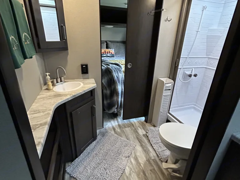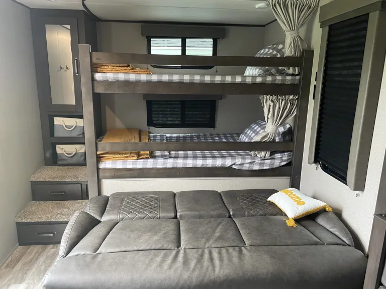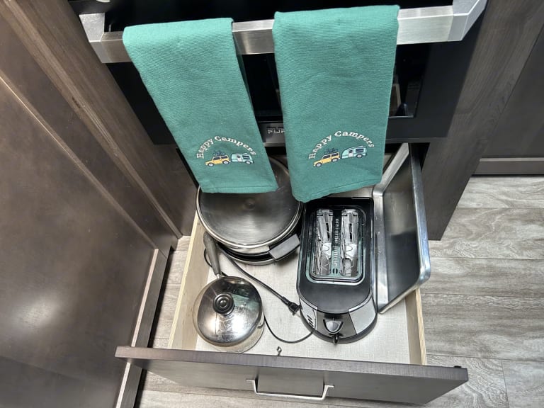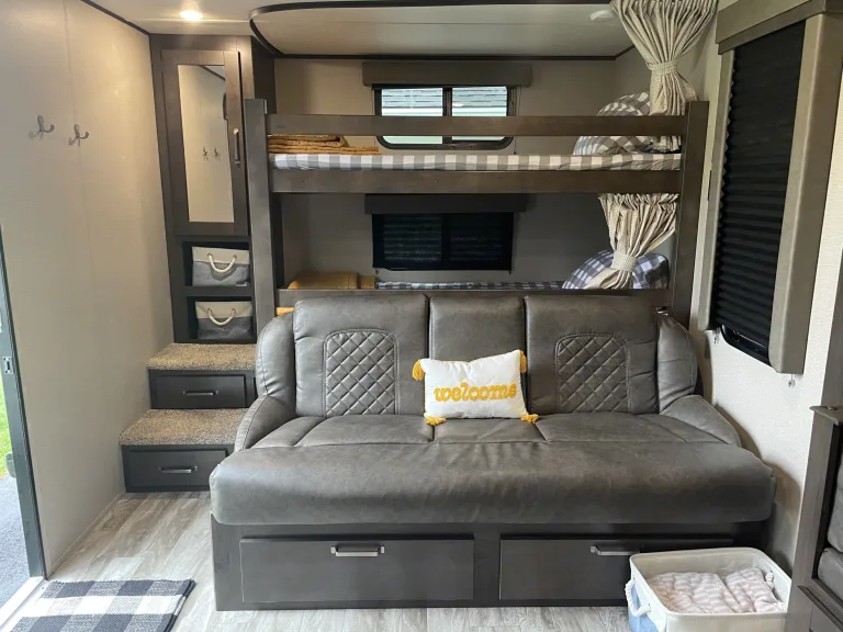 The RV was beautiful and perfect for myself my husband and our two kids. They set everything up and had a lot of extras that I didn’t expect like a s’mores kit s’mores sticks table top, griddle bowls, plates, forks, spoons, knives, napkins, everything you could possibly need. We absolutely loved it!