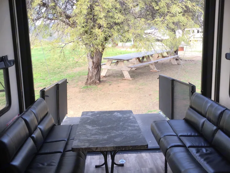 Small but functional! This rig is perfect for a small family Desert trip or a romantic beach get away for two! Comes equipped with all the essentials. Plenty of storage space with overhead cabinets, pantry, and a linen closet. Comfortable seating area and queen bed. Patio extension provides more living space and safe space to enjoy the outdoors.