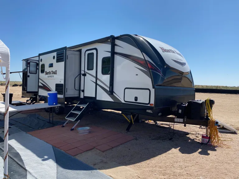Great family bunkhouse with a queen in front and three bunks in the back. You can easily use the dinette and couch for more sleeping room! Has an outdoor kitchen, outdoor shower, built in inverter, solar setup, can arrange for a generator, 2 AC units if you have 50 amp service, the list goes on. The unit is decked out with an outdoor kitchen, BBQ, spare propane, 2 AC units for year round comfort. Queen bed is an upgraded memory foam mattress. I can set it up however you need it, we can discuss delivery to accommodate your trip!