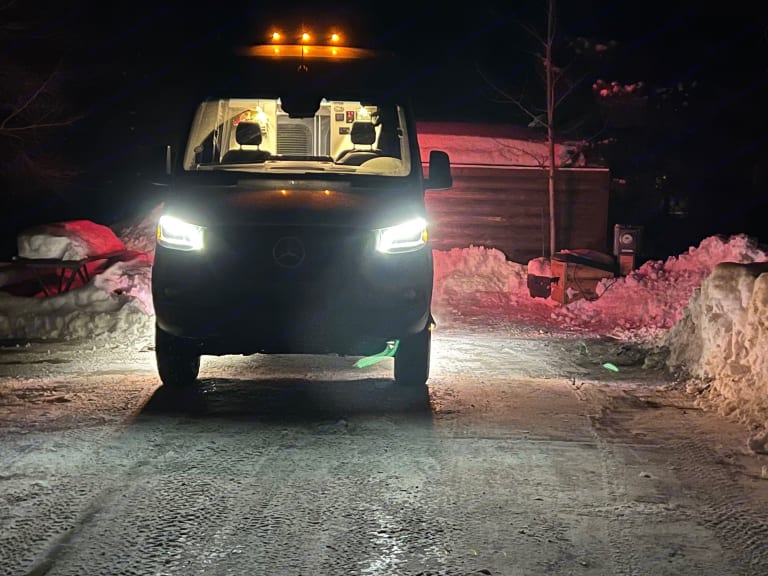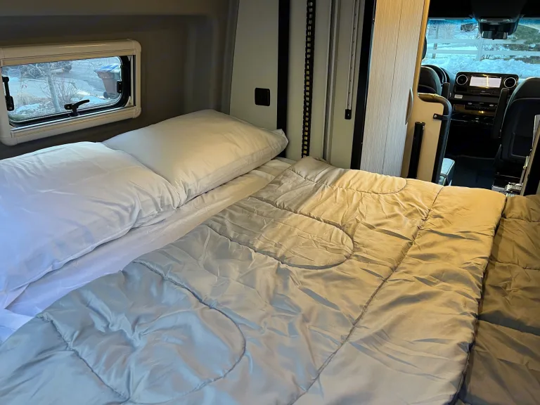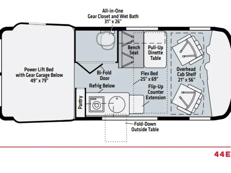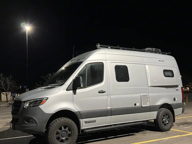 Winnebago 4x4 Revel – Mercedes-Benz Sprinter chassis. The function-fueled design, powered by the reliability of a 3-liter turbo diesel engine and the freedom of on-demand 4WD.The power lift bed allows you to transform your living space into a 140 cu ft. garage – perfect for all toys. an fit 6'2 in the bed large enough for 2 adults. Has AC and heat with shower and toilet.On-Demand 4WD with the following safety features make driving this RV a breeze:Low-range electronic stability and traction control