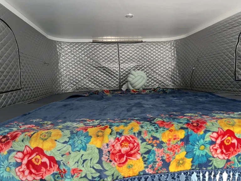 When the roof is lowered, the total height of the vehicle is only 7 feet 2 inches, within the height limit of most public places, making it easy to drive anywhere.The front “goose head” section has a queen-size bed, and the front bench seat can be converted into a single bed. The mattress is 3 inches thick (may not be suitable for everyone).