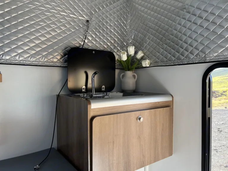The camper door is only 42 inches high, so please be careful when entering or exiting to avoid bumping your head.