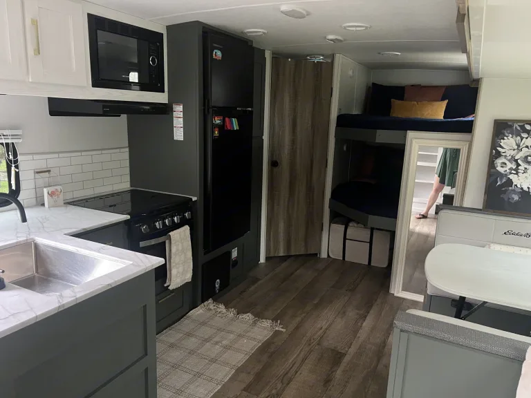 Hi, I’m Melissa! My family and I fell in love with camping for the peace, fresh air, and time spent together — and we wanted to share that joy with others. That’s why we offer our beautiful Heartland Eddie Bauer Edition camper fully stocked and ready to enjoy.