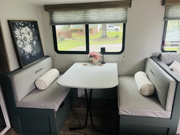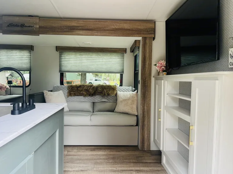 -Please note: This is a non-pet rental to maintain the luxury condition and comfort for all guests.Whether you’re planning a weekend retreat or an extended getaway, our Eddie Bauer Edition Heartland offers a refined, relaxing escape designed for those who appreciate the finer side of camping.What's includedTo make your stay as comfortable and hassle-free as possible, our camper comes fully stocked with the following thoughtful essentials and cozy touches, all included at no additional cost: Bed sheets, blankets, pillows, bath towels, kitchen towels, dish soap, hand soap, toilet paper, dishes, eating & cooking utensils, pots, pans, cutting boards, coffee pot, water kettle, ice cube trays, personal fan, rechargeable lamps, and fun board games for your stay. RecommendationsWe recommend the following camp sights: