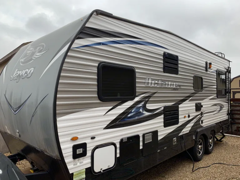You are looking at a 2017 Jayco Octane 222. This camper is a bumper pull camper with a dry weight just over 5,000 pounds. This makes the camper a 1/2 ton towable camper.The camper is a toyhauler although you can use it as a regular camper as well. It has two rear beds on a chairlift system. The bottom bed turns into the couches during the day. The camper also has a foldable dining table that is put away at night.Unlike most listings I offer a cooler that holds ice for days, outdoor grill table, foldable lawn chairs, lighted cornhole game, and a generator at no extra cost if needed. The camper will also have all kitchen utensils, pots and pans, bath towels, dishwashing soap, and hand soap.The camper has indoor and outdoor speakers, lighted outdoor awning, lighted ramp door, rear screen wall, fuel station, and an outdoor shower.