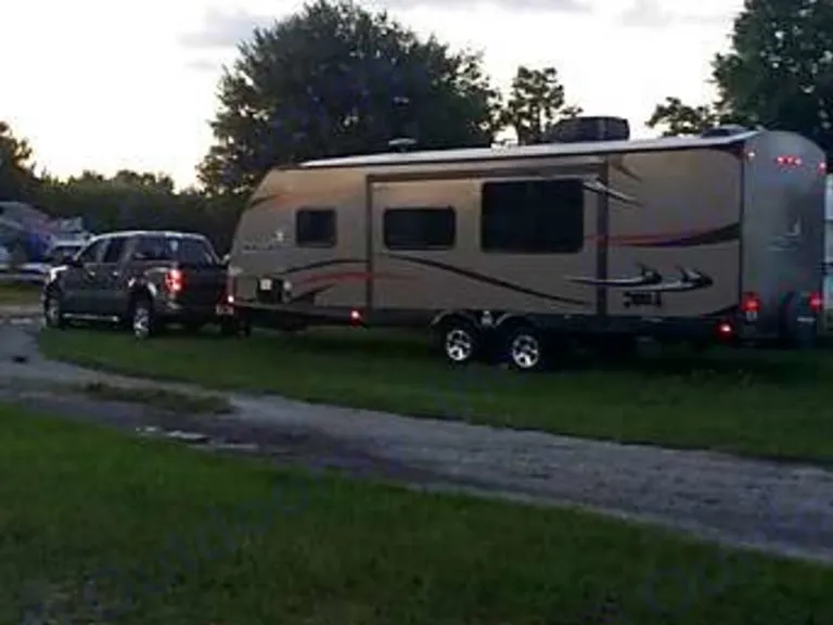 Great trailer for camping with the family or friends. Master bedroom sleeps 2 adults, sofa folds out to a full size bed, and dining area table/benches convert into another bed for 1 adult or 2 kids. There is a full bathroom including toilet, shower, sink/vanity, and a large storage closet for towels, clothes, etc. Full kitchen amenities including range/oven, microwave, refrigerator/freezer, and twin sinks in kitchen island. Plenty of storage everywhere, including a large food pantry. There is also an outdoor kitchen area including refrigerator, hot/cold water sink, detachable propane grill with onboard gas supply line, as well as a cable tv port. My V6 F-150 Ecoboost hauls this trailer with ease.