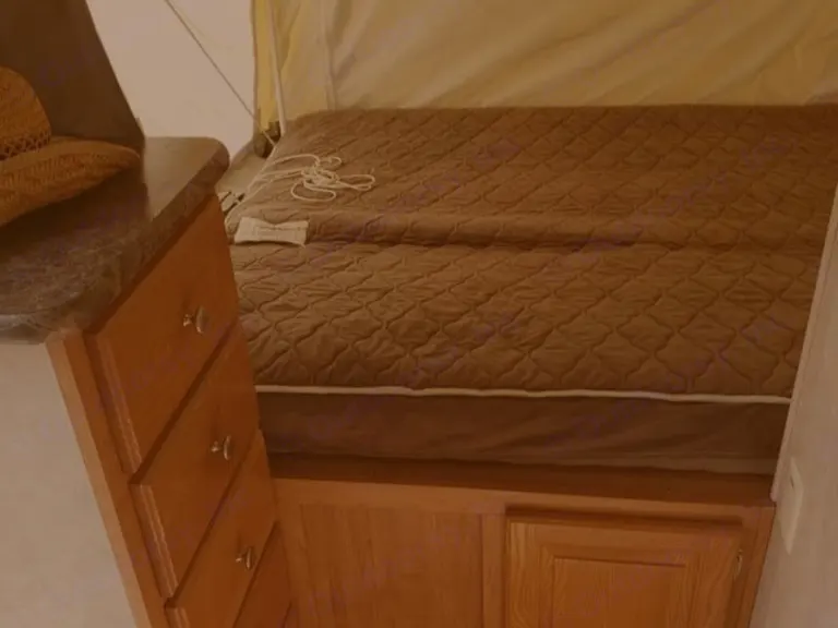 This 2009 Rockwood Roo is your ticket to adventure and great memories! The hybrid camper style keeps you in-touch with nature with waterproof tent-style sleeping but with Heated mattresses, a full kitchenette with refrigerator and freezer, heat and A/C, a bathroom, and room for 8. All this plus an attached toy hauler to bring your toys along for the ride. It's the perfect home base for wherever your adventures may take you!Our goal is to make your rental experience as fun, easy, and simple as possible. Per night rental fee includes kitchen essentials (cookware, 6 place settings, spices, salt/pepper, sugar, etc.), Keurig coffee maker and pods (including hot chocolate!), bedding for 3 beds (bring your own pillows and blankets, please), beach towels, basic toiletries, camping chairs, and a few games for rainy days. If you have questions about our camper or need help planning your trip, please ask! We're here to help you have fun and make memories!Full-service delivery, set up, and return available! For distances greater than 50 miles from 27540, please ask for a custom quote!***Towing Requirements: The dry weight of the camper is 4968 lbs. Manufacturer's recommendation is that the weight of cargo should not exceed 1318 lbs. If renter decides to fill trailer to maximum cargo load, tow vehicle must be able to safely tow 6286 lbs. Also, tow vehicle must be able to handle a 450 lb hitch rating. Tow vehicle must have a 2 5/16" ball, if you need to use our weight distribution hitch with sway bars (no extra fee). Tow vehicle must have a 7-pole trailer connector and electronic brake controller. You must add road-side assistance to the rental if towing.***We have had some really bad towing rentals so we are currently preferring delivery rentals to locations close to our home. Feel free to reach out with requests.