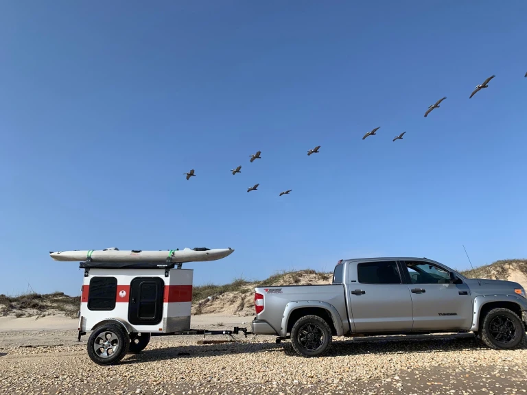 My family and I have a love for outdoor activities, however we needed to be able to bring a minimal shelter along with us to provide an adequate level of comfort for our young children. With it's light weight (650 lbs empty) and full size tires, we can bring this mini camper with us for an overlanding experience anywhere my truck can go. For us, that often includes trips 20+ miles down the beach on the National Seashore or quick overnighters by a nearby river. We'd like to share our camper with others who share our love for outdoor activities and appreciate spending nights off the beaten path.