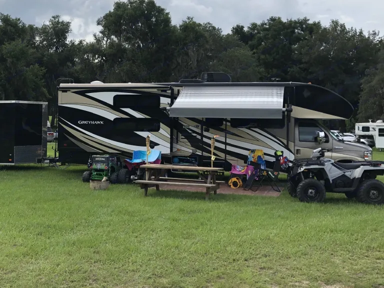 New, 2019, Jayco Greyhawk 31XL low miles, has plenty of room for the whole family and maybe a few extra. There is a queen size bed in the rear, a bed over head bunk up front, bunk beds that have there own TV, a jackknife sleeper sofa and a dinette that turns in to a bed as well. There are four TV’s on board. The kitchen is fully stocked with cups,mugs,plates,bowls,eating and cooking utensils,pots and pans, and a coffee maker. We provide clean linens and towels as well as the required toilet tissue. We can deliver,set up,and pick up locally for a delivery fee. It is our goal and hope that we can help you and your family have an amazing and memorable adventure together!!