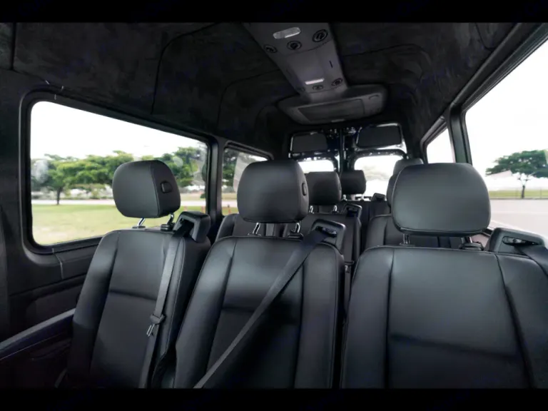 Ride in style with comfortable seating for up to 14 people plus the driver. With spacious storage and USB-C ports, the Sprinter puts your passengers and your business first.What's includedHas a new state of the art Mercedes-Benz AC unit that cools down the bus really fast