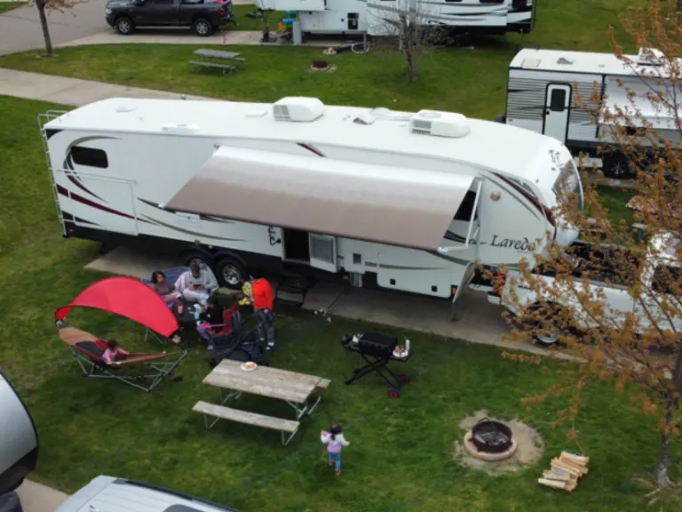 This 2013 Keystone Laredo is featuring a custom, professional conversion fully equipped with a queen-sized bed, sink, induction stove, microwave, ventilation and heater. Tons of storage space underneath for all of your adventure gear! Inside & outside speakers. Sleeps 7 comfortably.. Master room has 10” queen foam mattress.. 2 pull out sofa beds 1 top bed. Outdoor kitchen with refrigerator. What's included2 TVs, 2 camping chairs , Gas BBQ skillet, cups, plates, cooking utensils, toothbrush, tooth paste, and blankets