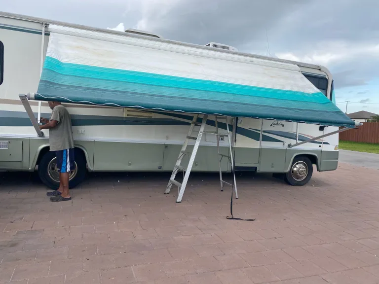 33ft long and can sleeps a family/group of 5 persons comfortably. Kitchen, bath and bedroom comes fully loaded with basic amenities and then some. Folding table and chairs to enhance outdoor experience and a very large awning to compliment the finishing touch. No climbing/relaxing on roof of vehicle. Smoking is strictly prohibited inside the RV. Pets must be potty trained, waste is strictly prohibited. Park and ride or hitch your vehicle at a designated pick up address. Queen size bedroom, with tons of storage. Overhead bunk sleeping area as a bonus above the driver / passenger cab, sofa also turns into a bed.