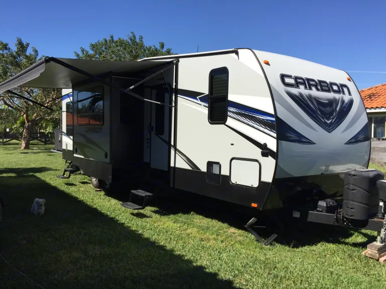 Perfect Toy Hauler for your camping adventure! Queen mattress in the master. Unit has one bathroom with a tub/shower combo. Reclining sofa and fully equipped kitchen. Unit is a toy hauler with a 12' garage so the back room also has double bunk beds! Plenty of room to store all of your toys. Bottom bunk can be made into a table. Can sleep 6-8 people comfortably. Back of unit folds out into a great porch for your enjoyment! Includes generator and 30 gal fuel tank for fun all weekend long. Perfect location for your Florida Keys experience! Willing to deliver unit and pick up to campsite for an additional fee. Must have 3/4 to 1 ton truck to pull trailer.