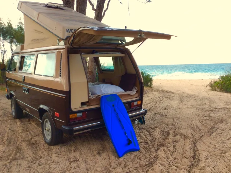 T3-Bear is a 1984 VW Westfalia camper van that will get you around O'ahu in style! Prepare for heads to turn as you cruise around the coast, checking our surf spots or even driving through town. Rebuilt and maintained by a VW mechanic, expect a modern ride in a classic exterior. Bear has a stove for cooking and a pop-top for late-night star gazing, room for sleeping four people, and everything else you need to live comfortably on the go. With an automatic transmission and full power-steering, anyone can drive this van! There's no better way to get out and see O'ahu then with this classic beach camper.Along with this van you have access to many items that will make your trip more enjoyable.Kitchen - Sink, stove, cups, glasses, silverware, bowls, pots, pans