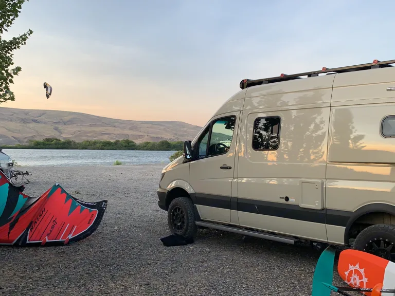 Zen Space is a 2019 “Revel” in pristine condition, excellent for adventure vacations, or weekend getaways. The Zen Space is the perfect retreat you want to have after; hiking, climbing, mountain biking, kitesurfing, snowboarding, skiing, or any outdoor adventure. You can take a hot shower inside or outside, cook up a delicious meal or drive up to your favorite restaurant with this easy driving fully equipped class B van. After your meal, a warm and comfortable night sleep awaits you in this van, the window covers black out light for a better night sleep, easy to park, easy to drive, space for your toys, and comfortable.Van stocked with: