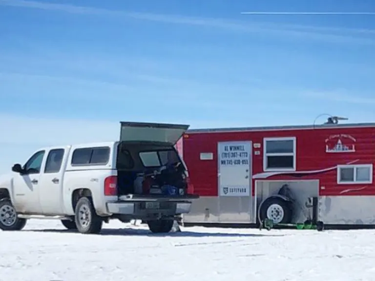 Great fish house/camper that sleeps 5 comfortably! Fully insulated including the floor for enjoying year-round. Oven, stovetop and microwave are available for cooking, lots of storage and a small bathroom area make this a wonderful choice for your trip.