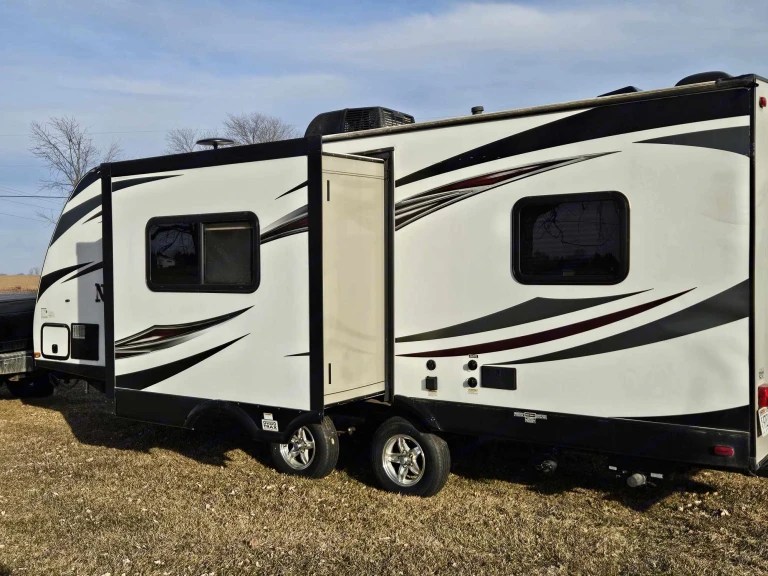 This is a great little camper. Ideal for a small family weekend trip or a couple for a week long festival.This camper is a 2016 camper. It was purchased toward the end of 2023 and is in great condition. It is light weight and easy to pull with my truck. It is 24 ft and comfortably sleeps 4 but can sleep as much as 8. Full sized over under bunks plus the queen bed in the front. It is very clean and well taken care of.I use a service for delivery and they can provide a quote, contact me for details (actual costs ) for delivery before booking.As with all campers today it requires a 30Amp connection in order to run the AC. If a lower amperage connection is used it will trip the breaker and also damage the AC unit. Most campsites will provide 30 and or 50 amp connections for all their powered sites.Linens, plates, utensils, and disposable items are not stocked in the camperFeel free to contact me if you have any questionsWhat's included• Cleaning supplies (paper towel, spray cleaner, broom, garbage bags)