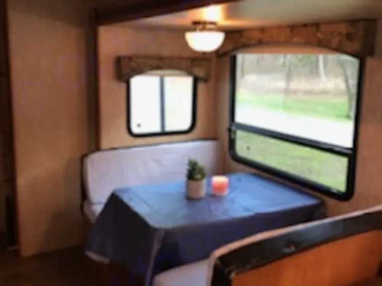 This Rv makes for a great family or just a couple getaway offerings lots of amenities including outdoor kitchen Wonderful honor to watch the sunset under with a comfortable comfortable couch To loungeThe open concept of this rv will make you feel right at home It is equipped with silverware is silver wear Cups mugs Cook Ware Coffee maker All the amenities to have a great weekend away It's a nature Way of getting out and exploring the world Nothing like being out in the forest Enjoying nature at its peace
