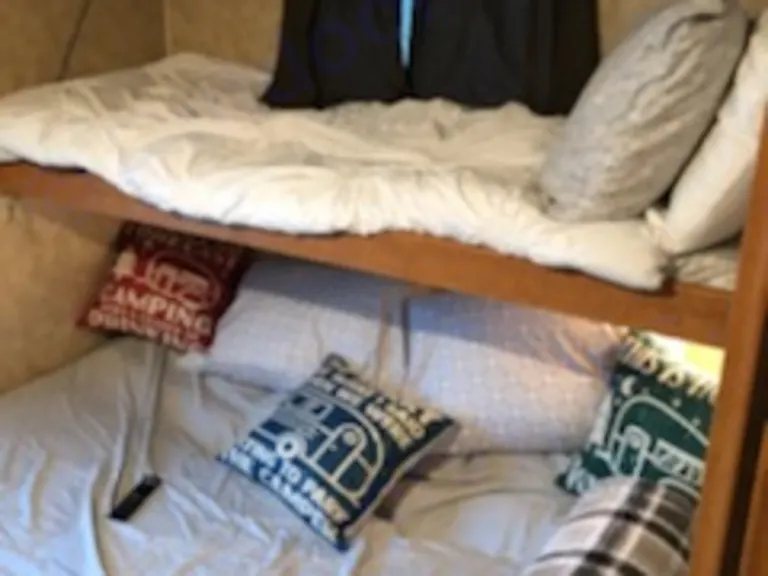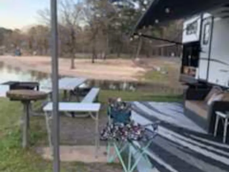 Hello my name is Kevin and my wife is Julie our son is Dylan. We have a 30 foot Palomino RV with two slide outs back bedroom bathroom with shower and toilet and a sink as well full kitchen with sink refrigerator stove living room with couch TV radio Bluetooth front master bedroom with two closets two nightstands with drawer as well 2 privacy doors lots of storage under front master bed it is equipped with Central AC and heat hey can run on a 30 amp or propane Outdoors has a wonderful awning for relaxing as well as an outdoor carpet it also is equipped with an outdoor kitchen with cabinet space sink refrigerator and a double burner for cooking two propane tanks 3 grey water storage tanks 1 black as well as a freshwater tank has a new water filter as well it does have a clear water pump and case off-grid camping I do have a higher power very quiet generator that can rent with as well also I have 3 kayaks for rent