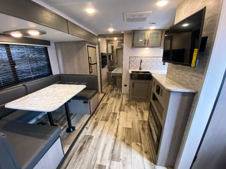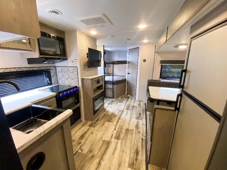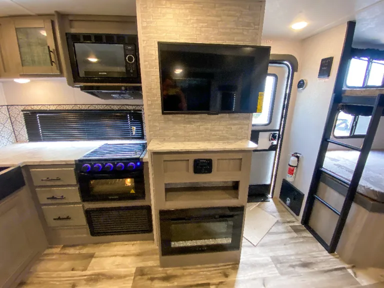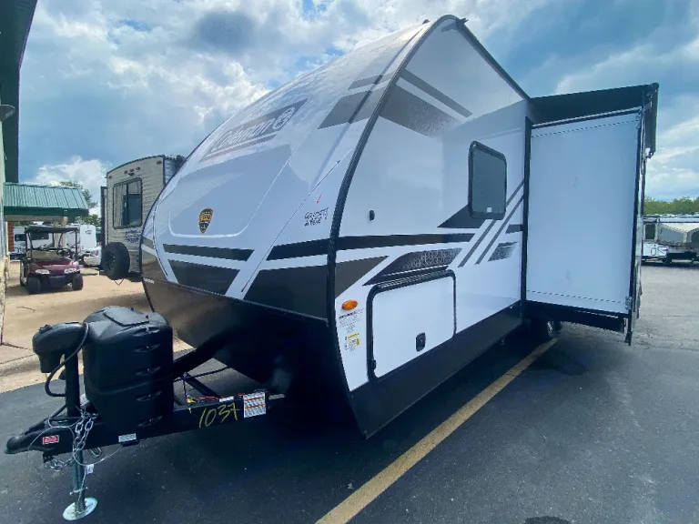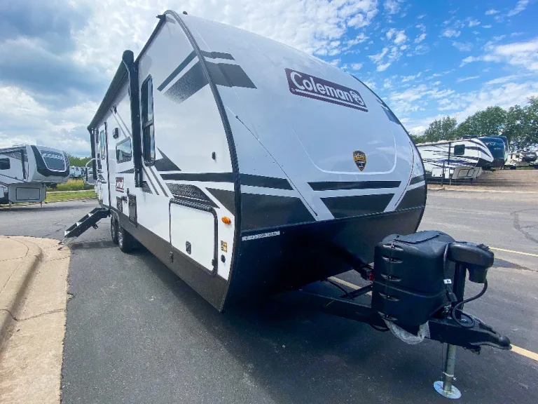 This is a Brand NEW Coleman Light camper made with aluminum framed construction, with power awning and prepped for LTE/Wi-Fi. This light-weight camper sleeps up to 8 people and include power stabilizing jacks. This camper is here for you to make memories for years to come.This RV has all the comforts of home. Nice size fridge and dining table/living area with large TV and fireplace. Very roomy inside with bunk beds, nice size queen bed and a dinette conversion. Tall ceilings with skylight in the bathroom and many windows (with treatments) for natural light. We know you will enjoy camping in this camper trailer!Other things to noteNo PETS