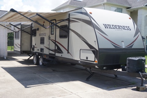 Great family ready camper suited for a long vacation, tailgating/cookouts or a weekend get away. Master bedroom up front offers plenty of privacy with queen sized bed and full slide out closet and overhead storage. Roomy bathroom with full size stand up shower. Large rear living area with Two leather recliners and full sleeper sofa. Recliner area can be converted to accommodate addition sleeping space upon request. Lots of large windows and sky lights with rear entertainment center with hideaway 32'' flat screen TV. Booth style dinner table provides plenty space of for the whole family. Table folds down to provide additional sleeping space and lots of overhead storage. 18' electric awning with integrated LED lighting. Outdoor audio system. Bed coverings, towels, cleaning supplies and toiletries and cooking supplies are provided to allow for the most enjoyable and convenient experience possible. The camper is equipped with a wide stance dual axle and is easily towed with a half ton Pickup. 30 AMP electrical. The camper has been very well kept and rarely used. Tires are n perfect condition and the exterior is free of defects. Delivery/setup and pickup/teardown option is available for additional charge with in 50 miles of the Houston area subject to additional mileage charge beyond that. 2 Night Minimum.Eligible Drivers: Renter must be 25 years of age or older, must have a valid driver's license, a clean driving record and a major credit card. At the time of reservation, Renter must provide the correct and proper personal identification, personal information and personal Auto Insurance Information. All information will be verified. WE Reserve THE Right TO Refuse ANY Applicant OR Reservation FOR ANY Reason, AT ANY Time.Rules: