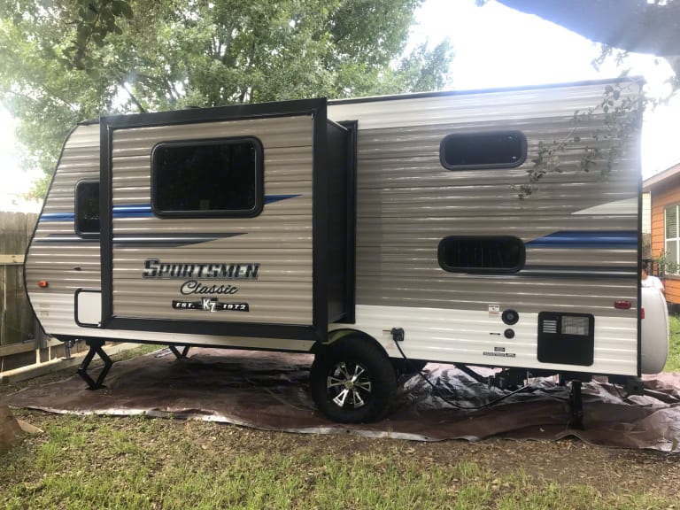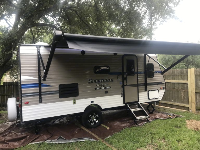 We are excited to share our family camper with you. Our travel trailer is light weight and very easy to tow. With a queen size bed , two bunk beds and a dinette bed allows a family of 5-6 to enjoy a getaway camping trip. It has a slide to allow a roomier setting for your family. It has an inside shower, refrigerator/freezer, stovetop, microwave and a Keurig to make your stay more comfortable. It offers plenty of storage and includes other amenities at no extra charge.Weight distribution and stabilizer bar provided at an extra cost.Delivery and pick up available within a 40 mile radius at an extra fee. $150.00Length- 20'9"